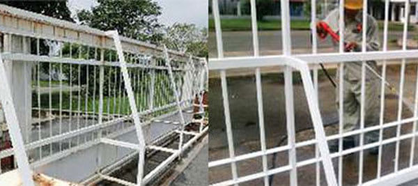 時々工のゲートなどが酷い錆び状態になっていることを目にすることがあリますが、実はこの鉄の錆びも塗装工程によって予防することが可能です。